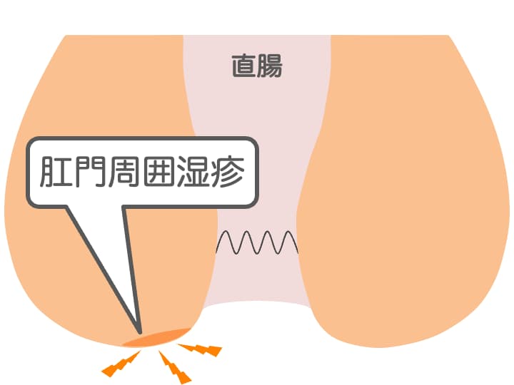 肛門の皮膚が炎症を起こし、皮膚荒れがおこり、膿が出ることがあります。